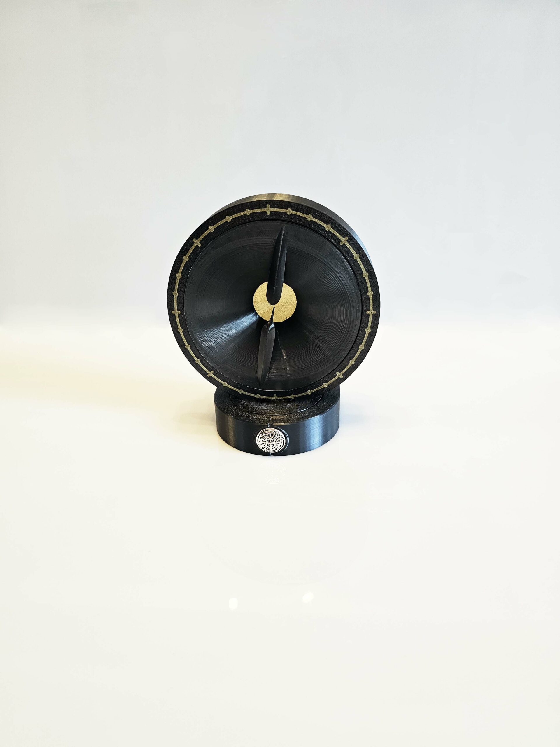 Central disk (the one with horn and spurs) can rotate on X-axis within the outer-rim. Gently use back ring for this rotation – as guides behind the spurs are relavely thin.
